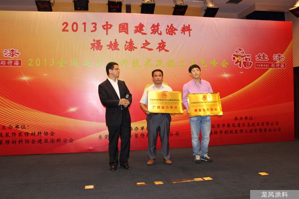 2014.12年會上中國建筑裝飾裝修協(xié)會建筑涂料分會給龍風(fēng)涂料公司
